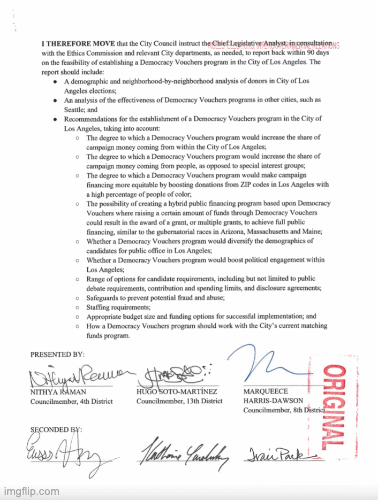 This is a big move towards empowering more Angelenos to participate in our democracy, and just the first official step of a longer process in City Hall where the Council considers exploring what a democracy vouchers program could look like for Los Angeles City.